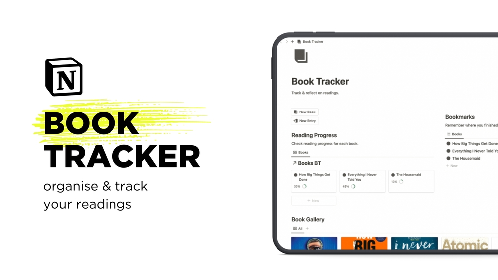 Track your reading progress, store notes, and manage bookmarks with the Book Tracker Notion template, your ultimate companion for a well-organized and immersive reading experience.